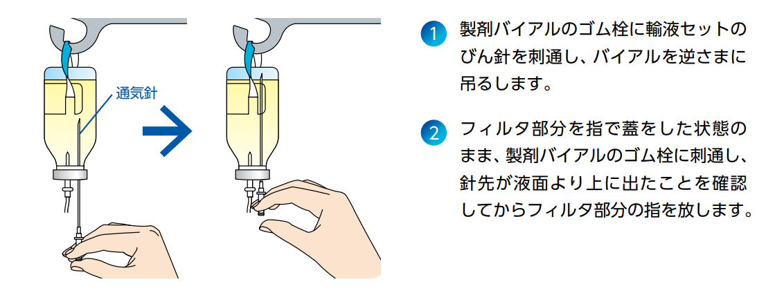 本製品には専用通気針が付属します。専用通気針の使い方については、次の図をご確認ください。